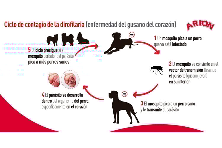 La filariosis es una grave parasitosis producida por un nematodo (Dirofilaria immitis). La dirofilaria adulta es un nematodo o gusano redondo. Este vive en las arterias pulmonares y corazón de los animales infectados, y al reproducirse libera miles de larvas llamadas microfilarias al torrente sanguíneo. Su diseminación se realiza a través de un mosquito o flebotomo, que propaga el parásito de un perro a otro a través de su picadura, ya que cuando un mosquito se alimenta de la sangre de un perro infectado, ingiere también microfilarias.