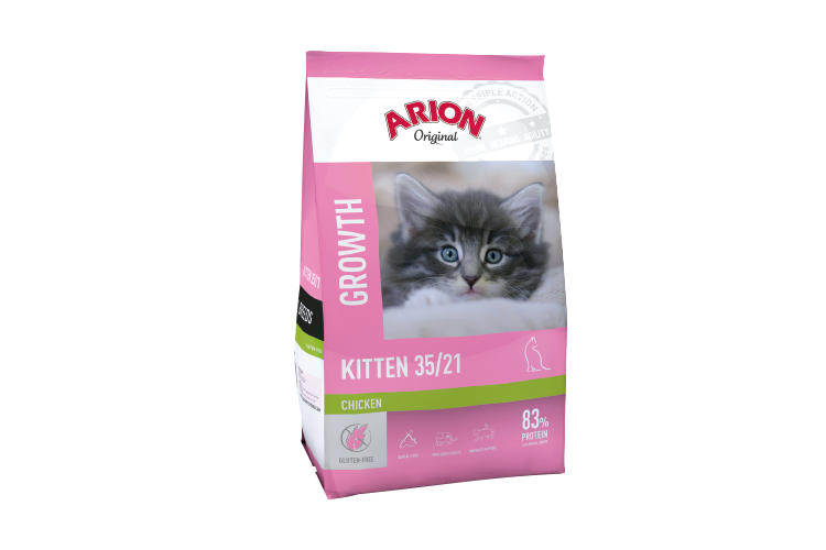 Tu pequeño gatito crece muy rápido. ARION Original Kitten 35/21 está cuidadosamente formulado para promover el desarrollo saludable de los sistemas digestivo e inmunológico de tu pequeño amigo.