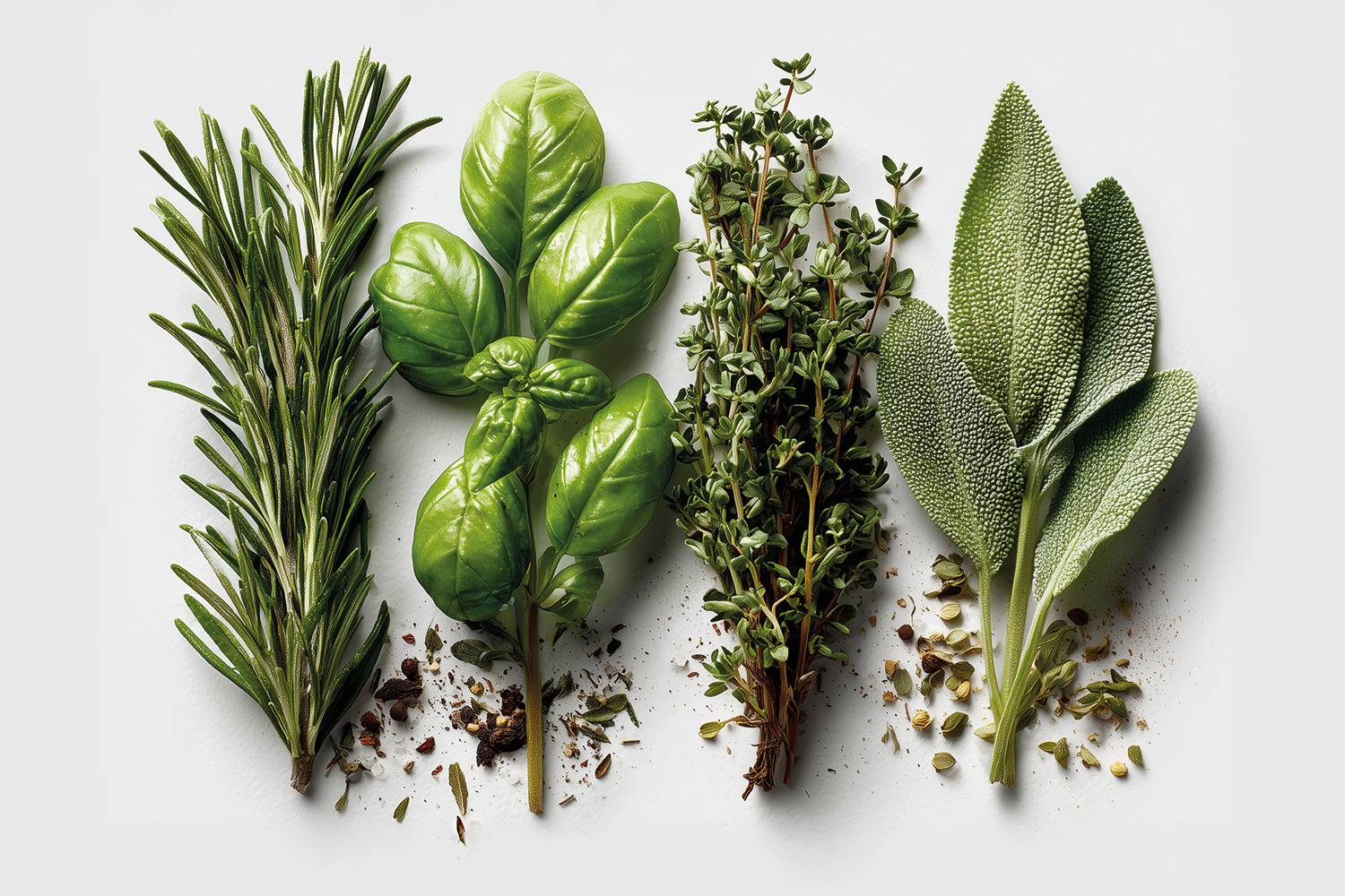 Incorporamos una gran variedad de finas hierbas tales como romero, albahaca, tomillo y salvia.
