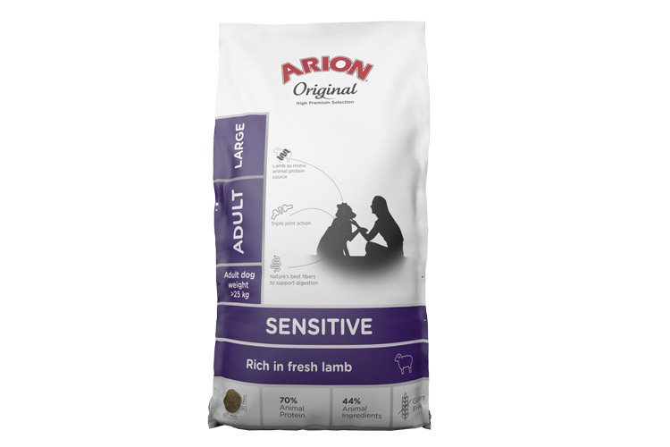 Arion Original Sensitive Large es un alimento completo para perros adultos. Esta receta a base de cordero y sin gluten, contiene una combinación sinérgica de las mejores fibras naturales y prebióticos para favorecer la digestión.